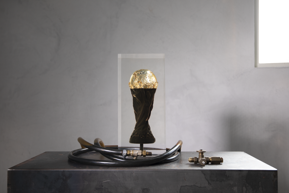 When the World Cup was about to start, Líbero Magazine aimed to shed light on FIFA's dark side in the process of selecting the host country for the world's most significant sporting event. We collaborated with activist and artist Andrei Molodkin to create 'The Dirtiest Cup,' a unique work of art crafted from Qatari crude oil. This artwork featured the cover of our special edition dedicated to the World Cup.